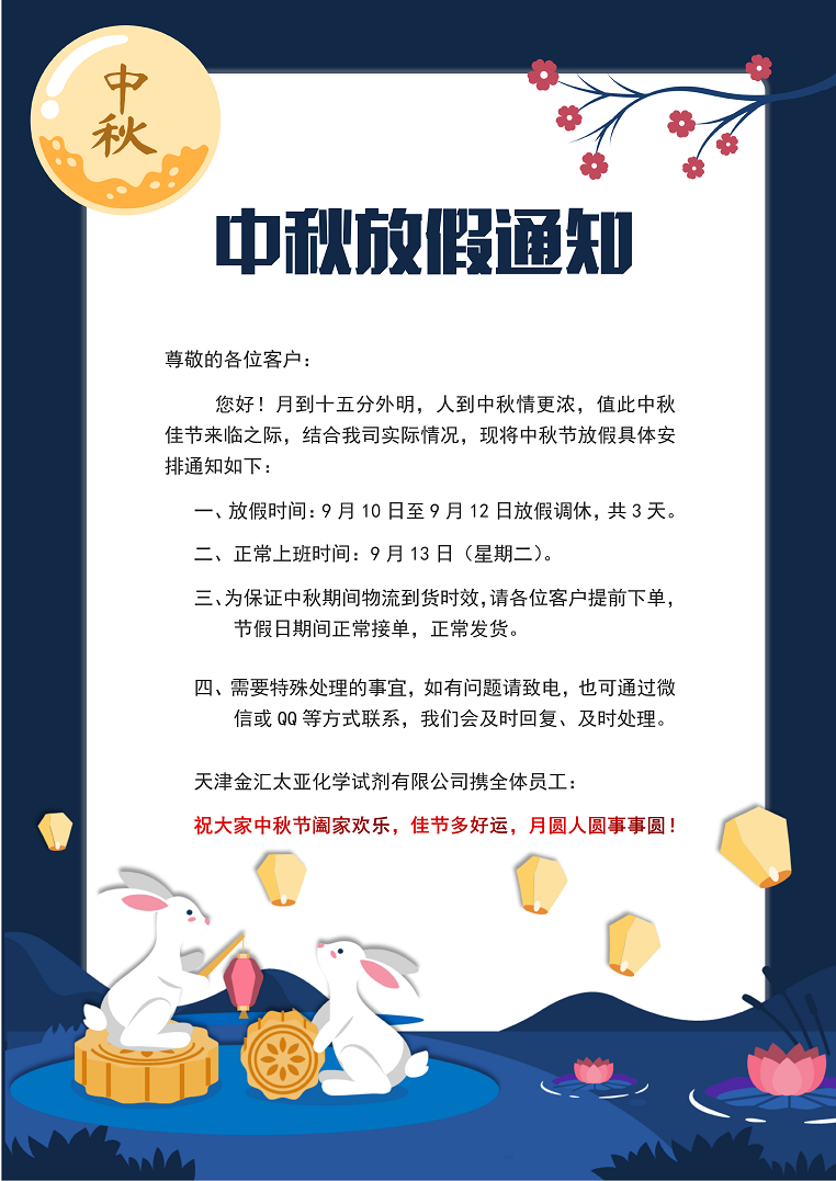 2022年中秋放假通知