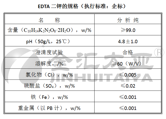 本试剂为白色晶体粉末。溶于水,易吸潮。本公司EDTA二钾主含量≥99.0%。其它指标详见产品检测报告。